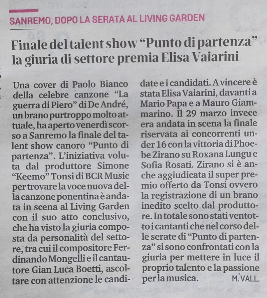 Complimenti a Sofia Rosati, allieva della prof.ssa Sara Mazzone presso il nostro Centro studi musicali “G. Amadeo”, terza classificata nel talent show “Punto di partenza”